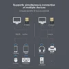 Admite funciones de aplicación: HFP/HSP (teléfono/auriculares manos libres) A2DP/AVRCP (música estéreo) HID/HOGP (ratón con teclado). DUN/PAN (en línea), PBAPMA; PFTPSPP.GATT, etc.;