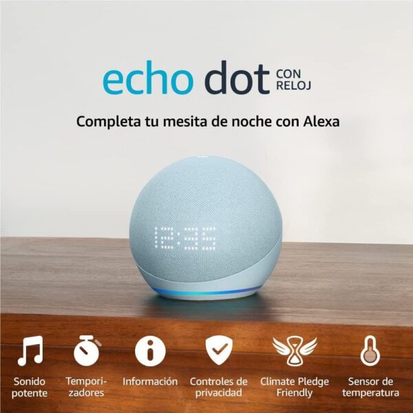 Amazon Echo Dot 5 Con Reloj Altavoz Inteligente Bluetooth con Alexa Sonido Potente Azul Nube
