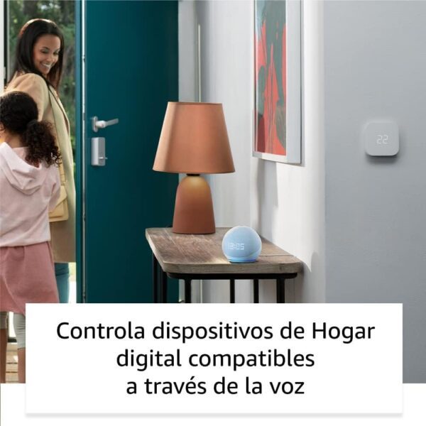 - MANTÉN TU CASA CONFORTABLE: controla dispositivos de Hogar digital con la voz y define rutinas activadas con los sensores de temperatura integrados en tu Echo Dot. Crea rutinas para encender automáticamente un ventilador inteligente cuando la temperatura de tu casa aumente por encima del umbral que establezcas.