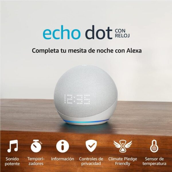 Amazon Echo Dot 5th Gen Con Reloj Con Asistente Virtual Alexa Color Blanco Glaciar