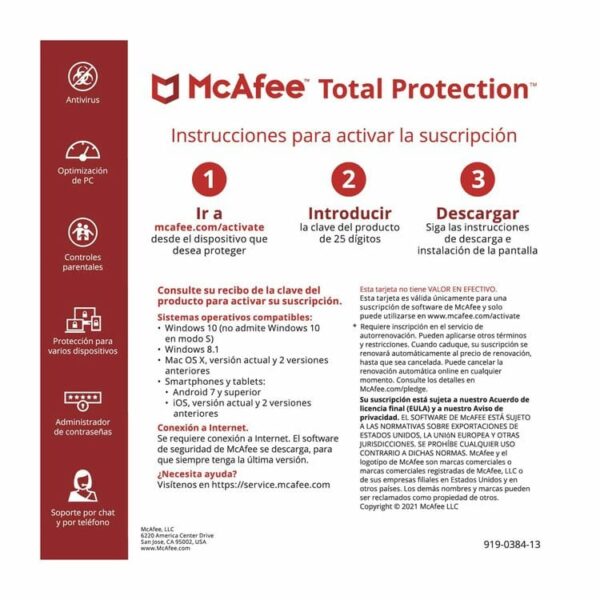 Antivirus McAfee Total Protection 10 Dispositivos 1 Año