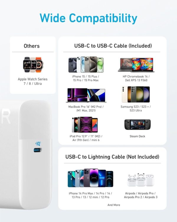 - Amplia compatibilidad: desde teléfonos hasta computadoras portátiles y más, nuestra tecnología patentada PowerIQ 3.0 proporciona una compatibilidad perfecta con prácticamente cualquier dispositivo móvil.