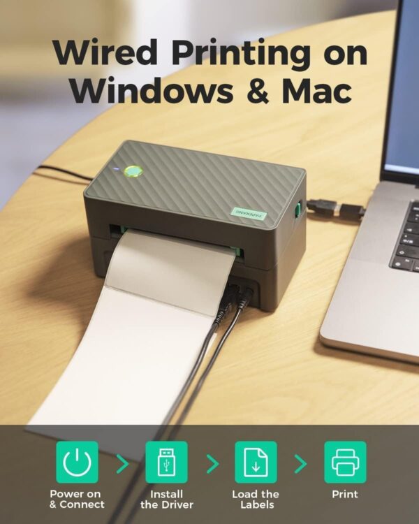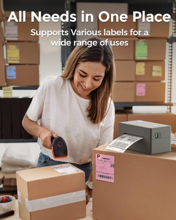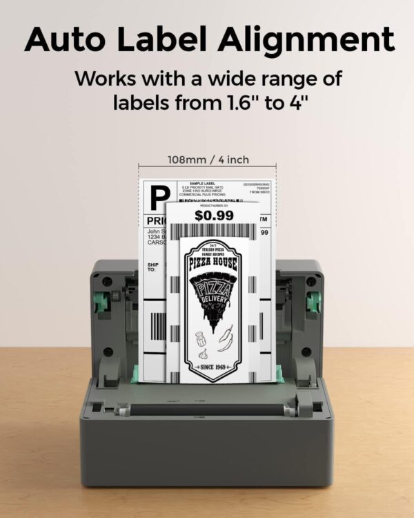 - Identificación automática de etiquetas: la impresora de etiquetas de alta velocidad identifica automáticamente y funciona con etiquetas de 1.57 a 4.3 pulgadas de ancho sin restricciones en la altura, ideal para etiquetas de envío de 4 x 6 pulgadas, etiquetas de almacén, etiquetas de código de barras, etiquetas de identificación, etiquetas de correo a granel y más
