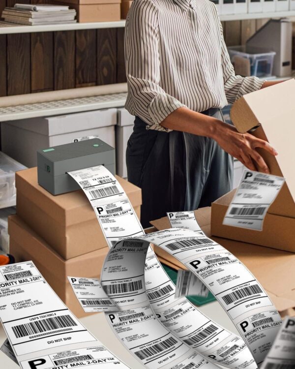 - Ahorro de tiempo: Impresión de alta velocidad a 5.906 in/s (literalmente una etiqueta de envío de 4 ” x 6 ” por segundo). Tecnología térmica directa avanzada imprime sin usar tóner o tinta, haciendo más bien para nuestra madre tierra.