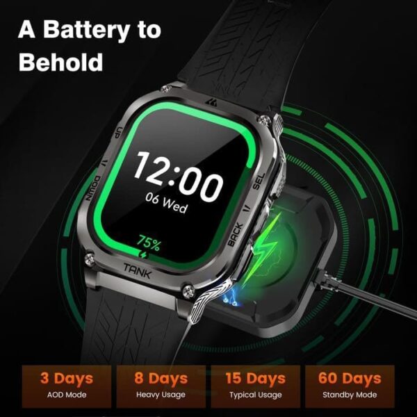 - ⌚Calidad estándar militar: AMAZTIM M3 está equipado con la pantalla Corning Gorilla de tercera generación, que es lo suficientemente gruesa como para manejar una variedad de comportamientos de ruptura de pantalla. Hecho de aleación de grado aeronáutico de la serie 6xxx y acero inoxidable 316L. El material de grado militar lo convierte en uno de los relojes inteligentes más fuertes y robustos. El AMAZTIM M3 ha sido probado con el más alto estándar de resistencia militar (MIL-STD-810H), incluyendo niebla salina, lluvia, impacto, etc. Puede enfrentar fácilmente cualquier entorno hostil.