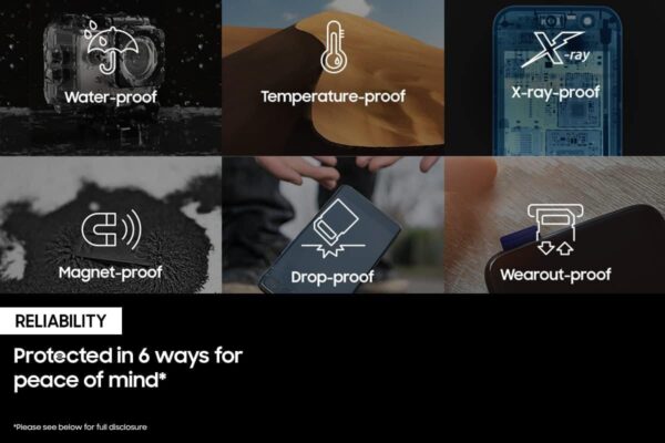 Estás totalmente protegido: EVO Select asume las aventuras de la vida con protección contra agua, temperatura, rayos X, imán, caídas y desgaste.
