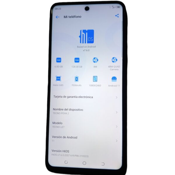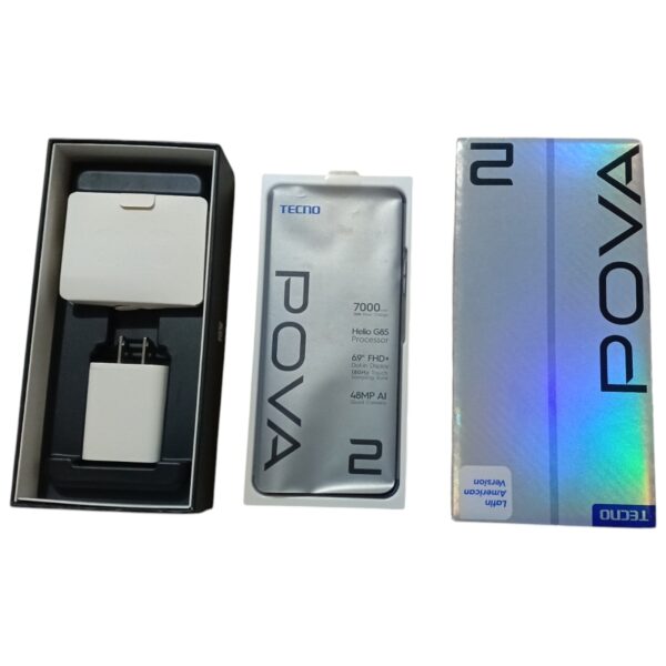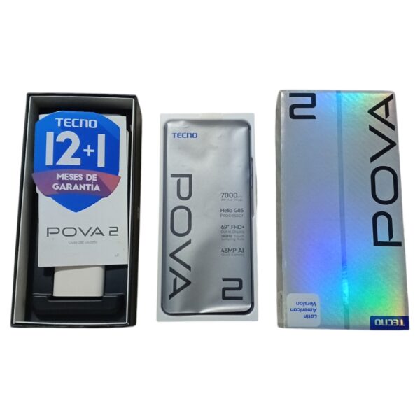 CONTENIDO: Celular Tecno Pova 2 128GB ROM, 6 GB RAM Color Polar Silver, Cargador 18W Original, Cable USB Tipo C Original, Audífonos de fabrica original y nuevo.